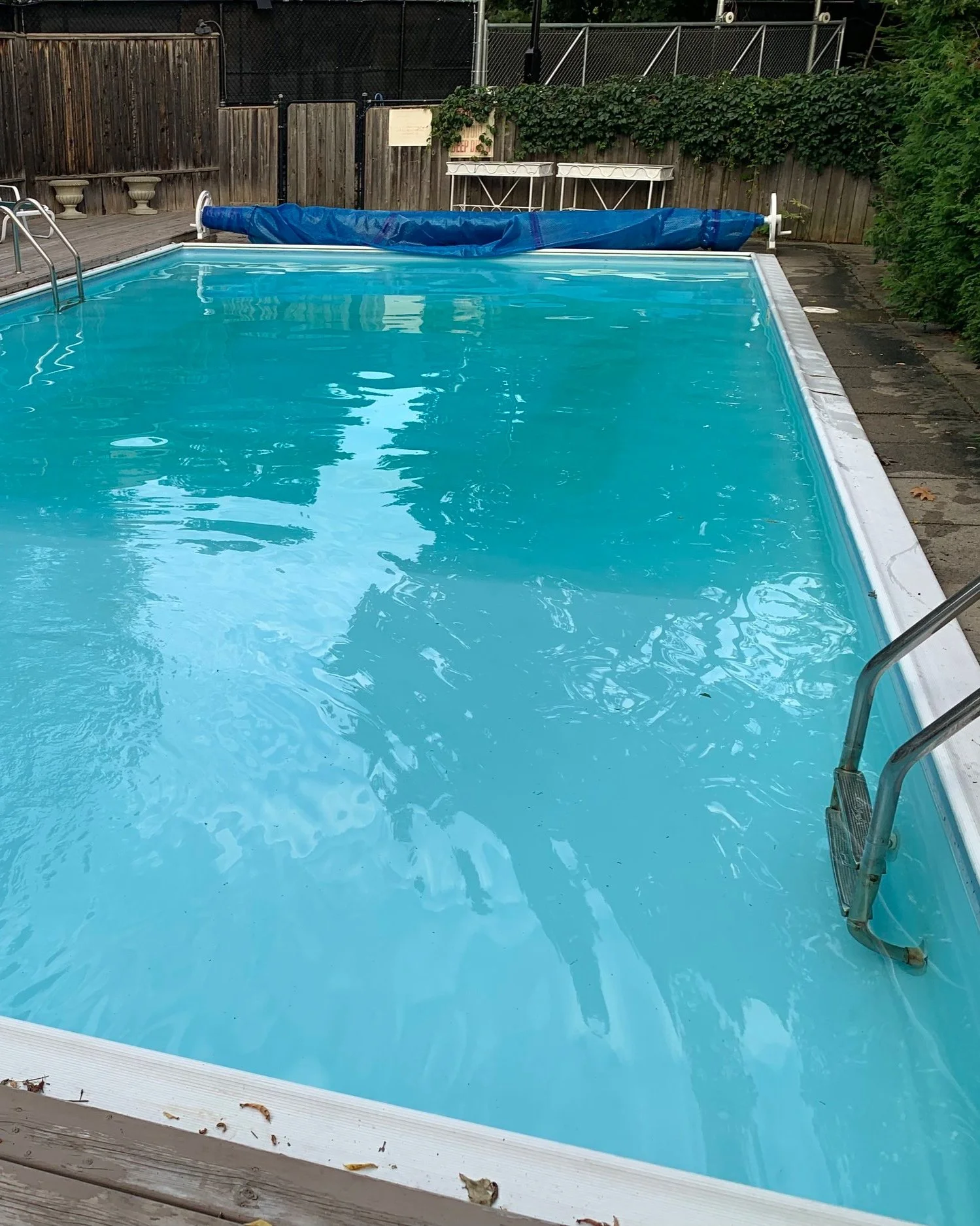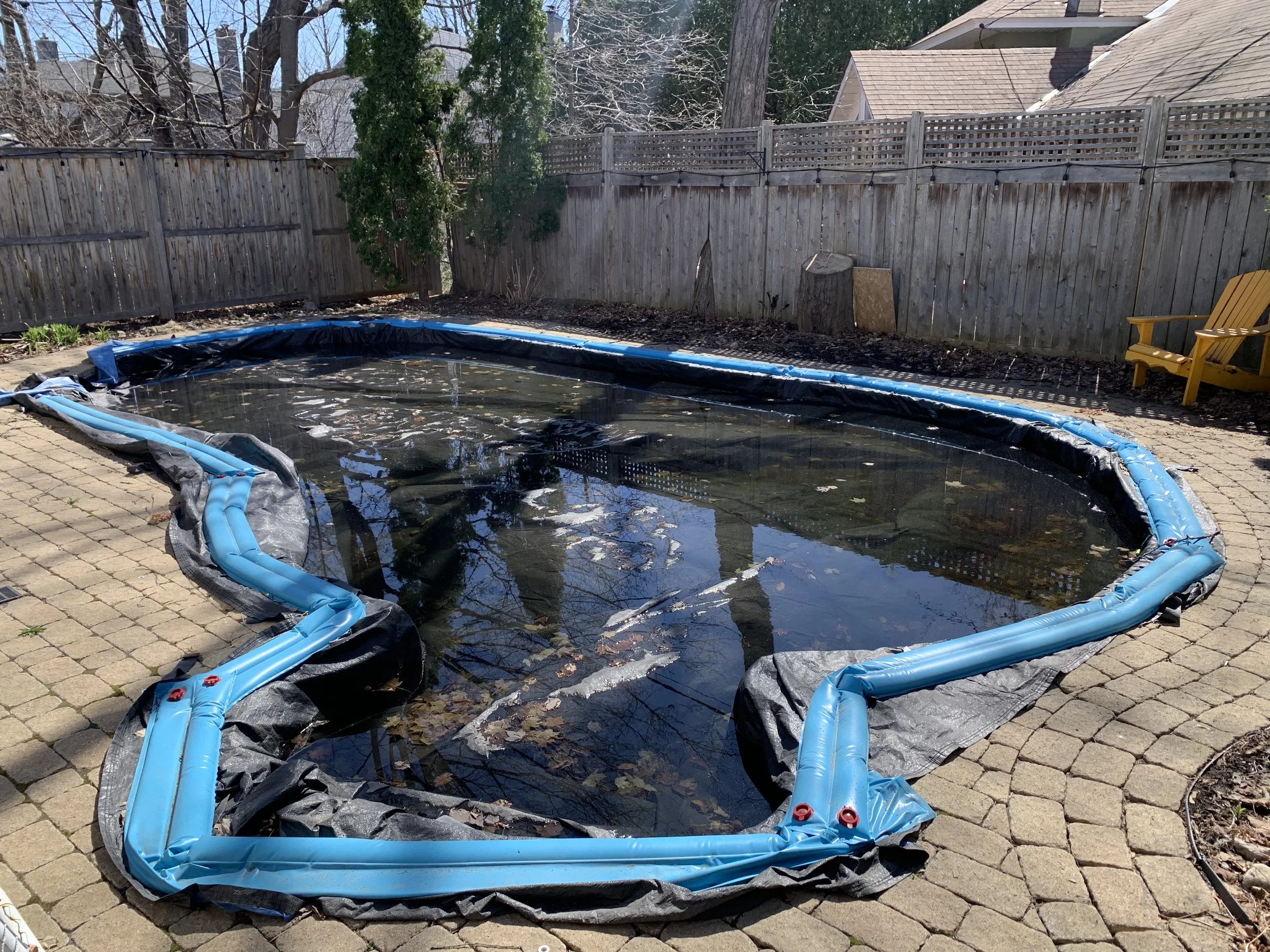 Everything included in the Equipment Close, plus we will pump water off of your tarp, remove the leaves, remove, clean, fold/put away the tarp, and then proceed with the Equipment Close. Leaves will be bagged and left for the homeowner to dispose of.